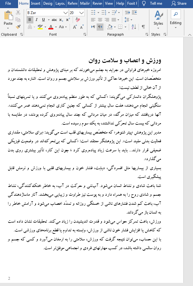 مطالعه ای بر تاثیرات ورزش بر اعصاب و روان |