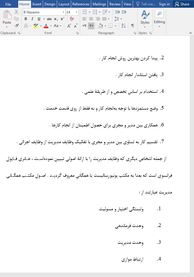1. عدالت: مدیران باید در تصمیم‌گیری‌ ها و تخصیص منابع عدالت را رعایت کنند و به تساوی حقوق و وظایف بین کارکنان دقت کنند.