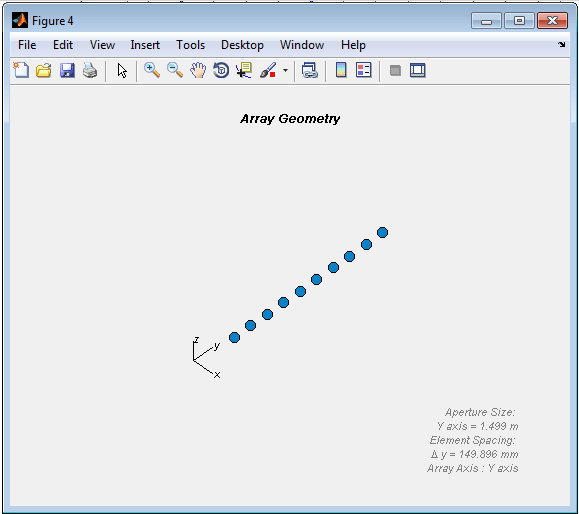 فاصله المان های آنتن خطی یکواخت در شبیه سازی برابر با نصف طول موج متناظر با فرکانس حامل در نظر گرفته شده است. برای انجام شبیه سازی ها دو حالت شکل دهنده پرتو کلاسیک و شکل دهنده پرتو کاپون مورد بررسی قرار گرفته است. شکل زیر آرایه آنتن خطی پیشنهادی را نشان می دهد.