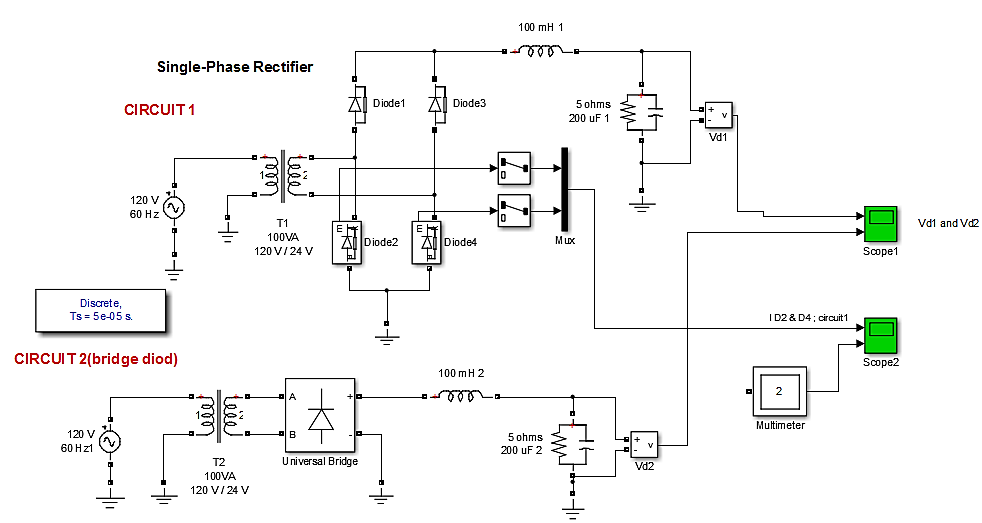 یکی از مراحل تبدیل جریان و ولتاژ متناوب به جریان و ولتاژ ثابت استفاده از مدار یکسو ساز در سیستم است. مدار یکسو ساز با یکسو سازی جریان و ولتاژ و در ادامه با استفاده از خازن و فیلتر مناسب، قابلیت تبدیل جریان و ولتاژ متناوب به جریان و ولتاژ ثابت را دارد.