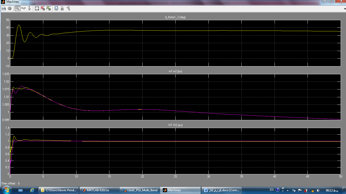 این شبیه سازی در محیط سیمولینک متلب (MATLAB) انجام شده و خروجی های زیاد دارد. در ادامه فقط تعدادی از خروجی های این شبیه سازی قرار داده شده است: