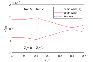 در طی انجام تست های آزمایشگاهی با لیزر، غالبا بایستی خواص پرتو گاوسی پس از عبور از تعدادی عدسی مورد بررسی قرار گیرد. همچنین، غالبا نیاز به طراحی یک سیستم عدسی برای ایجاد یک کمر باریکه (نقطهای در باریکۀ گاوسی) با قطر مشخص در یک مکان مشخص به طور مثال، در بادسنجی لیزری وجود دارد. با توجه به اینکه در مقیاس آزمایشگاهی فرد اغلب با عدسی در میدان نزدیک پرتو فرودی کار می کند، رفتار پرتو می تواند به طور قابل ملاحظه ای با آنچه که بر اساس اپتیک هندسی پیش بینی می شود با تفاوت هایی همراه باشد. نمونه ای از تفاوت رفتار بین پرتو های گاوسی و امواج کروی یکنواخت معمولی از منابع نقطهای زمانی رخ می دهد که کمر پرتو فرودی در صفحه کانونی جلویی یک عدسی مثبت باشد، در این حالت پرتوی جدید دارای یک کمر در صفحه کانونی پشت است. این امر بر اساس اپتیک هندسی غیرقابل توضیح است، زیرا پیشبینی میکند که یک جسم نقطهای در کانون جلویی، یک پرتو همسو در فضای تصویر را ایجاد میکند، یعنی تصویر در بی نهایت است. مثال دیگری که به تغییر کانونی مرتبط است، یعنی تفاوت بین موقعیت کمر تصویر برای پرتو گاوسی از موقعیت اپتیک هندسی آن، در مطاله اخیر کارتر، که بر حسب عدد فرنل در لنز عمل می کند، مورد بحث قرار گرفته است. زیگمن خصوصیات پرتوهای گاوسی را مورد بحث قرار داده و با استفاده از جبر ماتریسی، مسئله پیروی از تبدیل چنین پرتویی تحت عمل توالی از عدسی ها را به طور کلی حل و فصل می کند. در این آزمایشگاه، یک روش ساده برای ردیابی ویژگی های یک پرتو گاوسی از طریق توالی از عدسی ها (یا آینه ها) چندین سال پیش ابداع شده و موثر واقع شد. فرمول عدسی (یا آینه)، اپتیک هندسی را با ایجاد یک پارامتر اضافی، محدوده رایلی پرتو که می تواند به سادگی برای هر مرحله دوباره محاسبه شود، تعمیم می دهد. مزیت اصلی این است که روش مشابه روشی است که به طور سنتی برای دنبال کردن تصاویر مکرر از طریق یک توالی نوری بر اساس اپتیک هندسی اما با فرمول های اصلاح شده مورد استفاده قرار می گیرد. به نظر می رسد که محدوده رالی، یک ویژگی پرتوی تابیده شده بر روی هر عدسی، نسبت به عدد فرنل مورد استفاده کارتر پارامتر مناسب تری باشد. این پروژه روش و فرمول های مربوطه را شرح داده و ارتباط با اپتیک هندسی را نشان می دهد. این مقاله به بحث در زمینه لنزها می پردازد، اما با قراردادن علامت مناسب، نتایج به همان اندازه برای آینه ها نیز تعمیم داده می شود.
