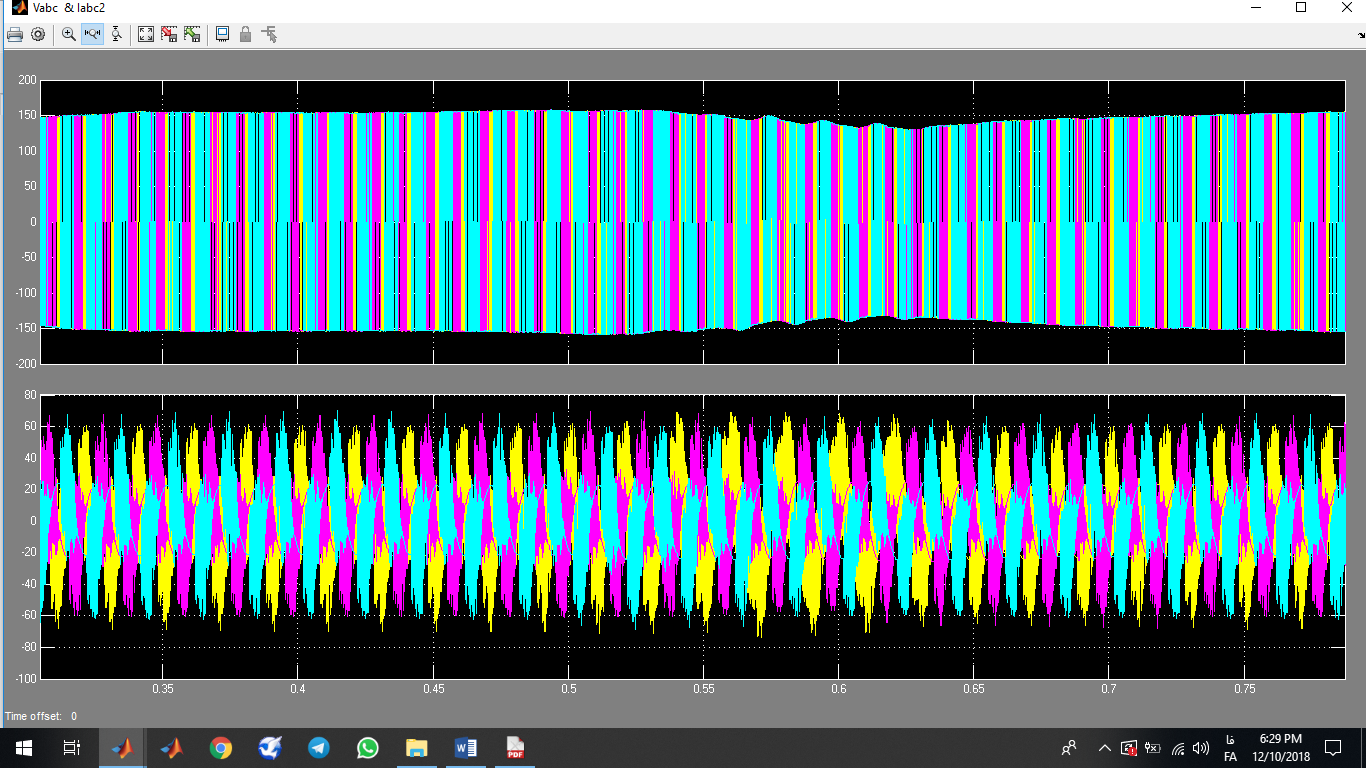 این شبیه سازی در محیط سیمولینک متلب (MATLAB) انجام شده و در ادامه نیز تعدادی از خروجی های شبیه سازی قرار داده شده است: