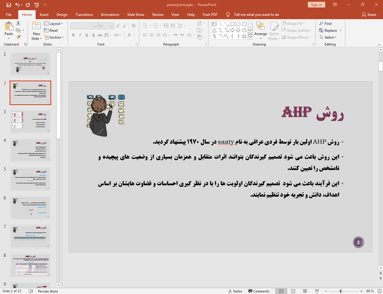 این پاورپوینت در 22 اسلاید تهیه شده و در ادامه نیز تصویر مربوط به اسلاید شماره 2 آن قرار داده شده است: