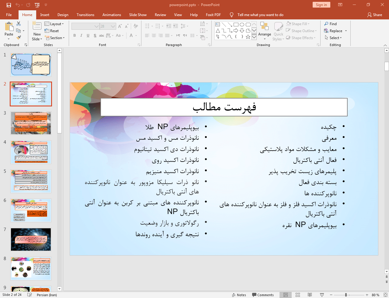 این پاورپوینت در 24 اسلاید تهیه شده و در ادامه نیز تصویر مربوط به اسلاید شماره 2 آن قرار داده شده است: