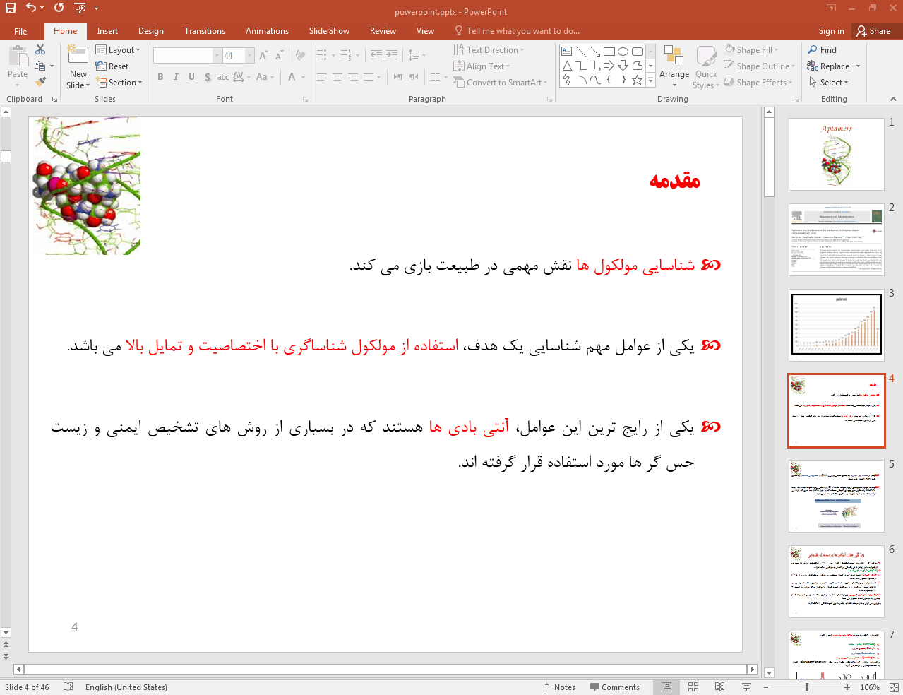 این پاورپوینت در 46 اسلاید تهیه شده و در ادامه نیز تصویر مربوط به اسلاید شماره 4 آن قرار داده شده است:
