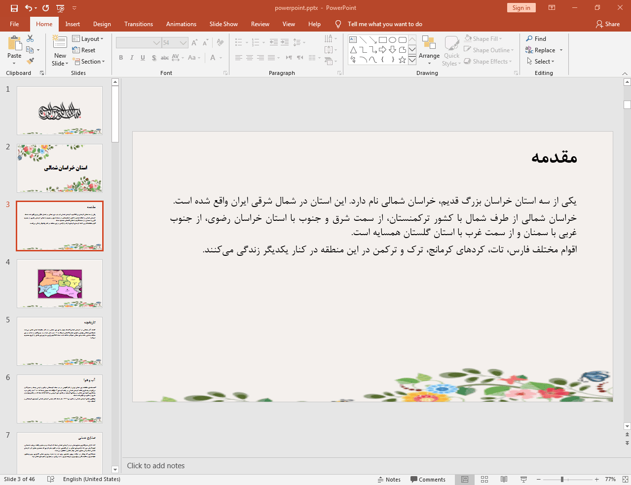 این پاورپوینت در 46 اسلاید تهیه شده و در ادامه نیز تصویر مربوط به اسلاید شماره 3 آن قرار داده شده است: