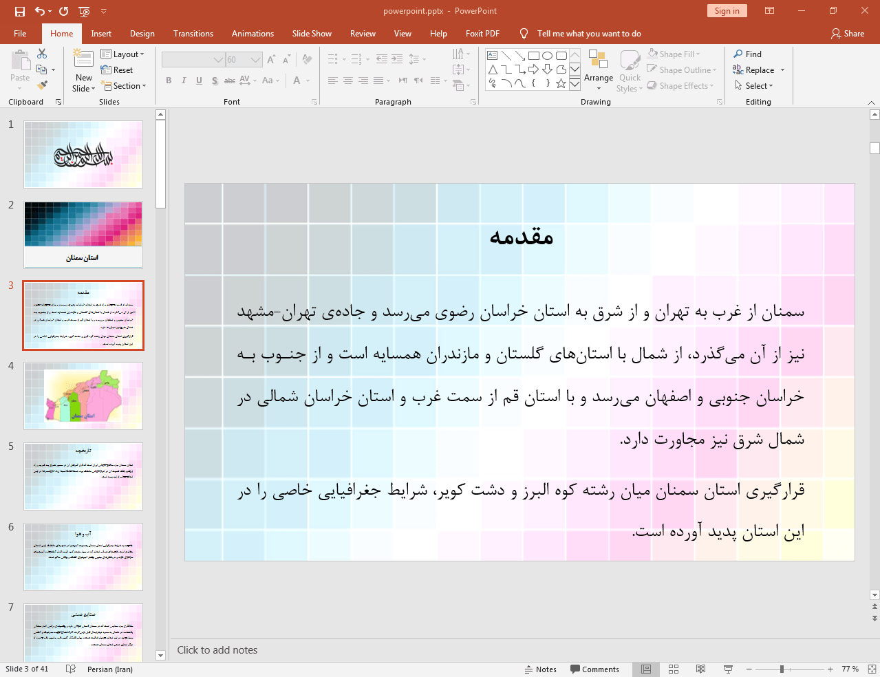 این پاورپوینت در 41 اسلاید تهیه شده و در ادامه نیز تصویر مربوط به اسلاید شماره 3 آن قرار داده شده است: