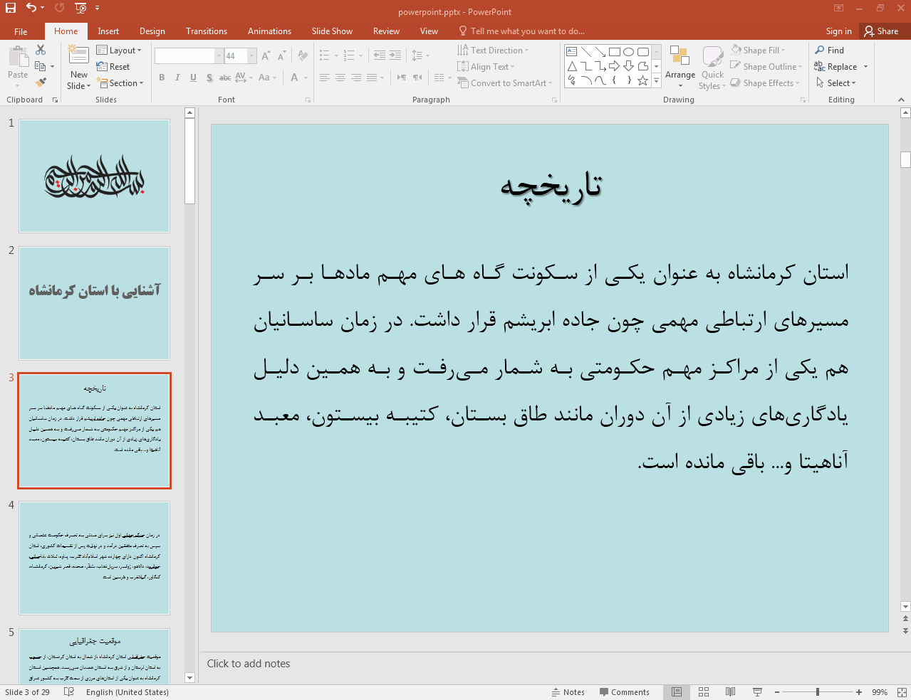 این پاورپوینت در 29 اسلاید تهیه شده و در ادامه نیز تصویر مربوط به اسلاید شماره 3 آن قرار داده شده است: