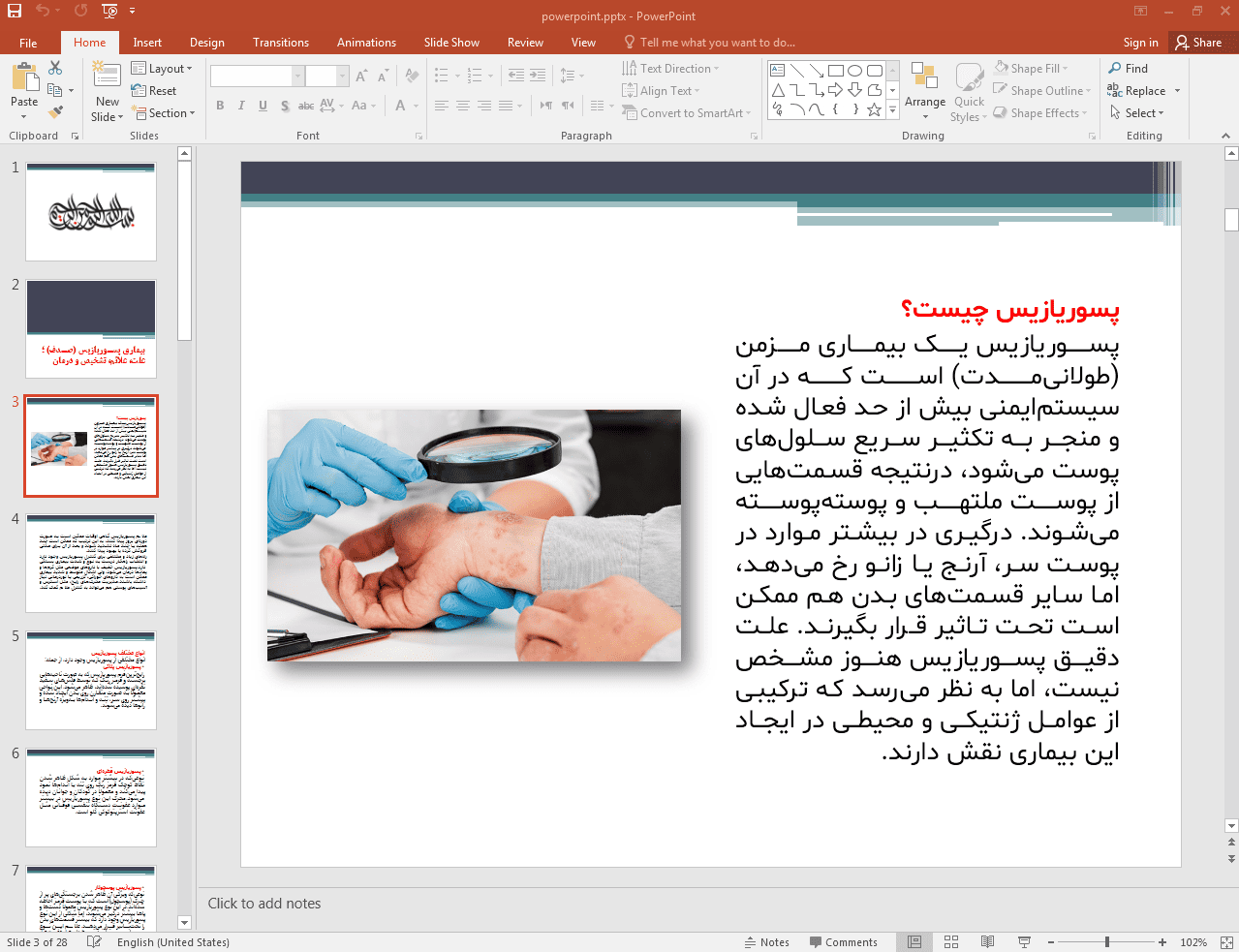 این پاورپوینت در 28 اسلاید تهیه شده و در ادامه نیز تصویر مربوط به اسلاید شماره 3 آن قرار داده شده است: