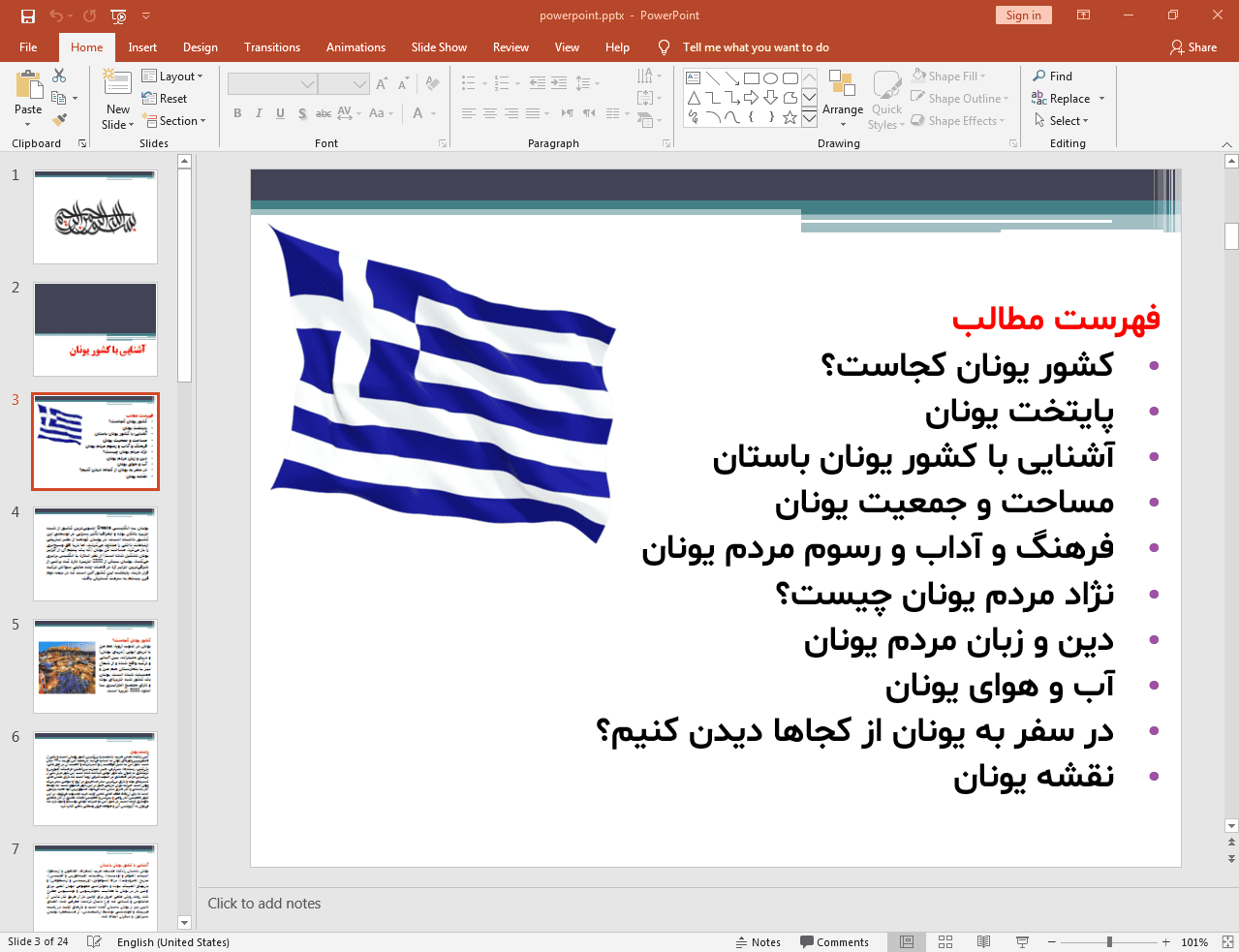دانلود در این پاورپوینت که با قالب (تم) زیبا و حرفه ای طراحی شده است به پاورپوینت آشنایی با کشور یونان در 24 اسلاید و به صورت فایل قابل ویرایش پرداخته ایم. در این پاورپوینت به صورت جامع به این موضوع پرداخته ایم و کاملا مناسب ارائه می باشد. در صورت وجود هر گونه مشکل لطفا با بخش پشتیبانی به شماره 09360147484 تماس بگیرید.