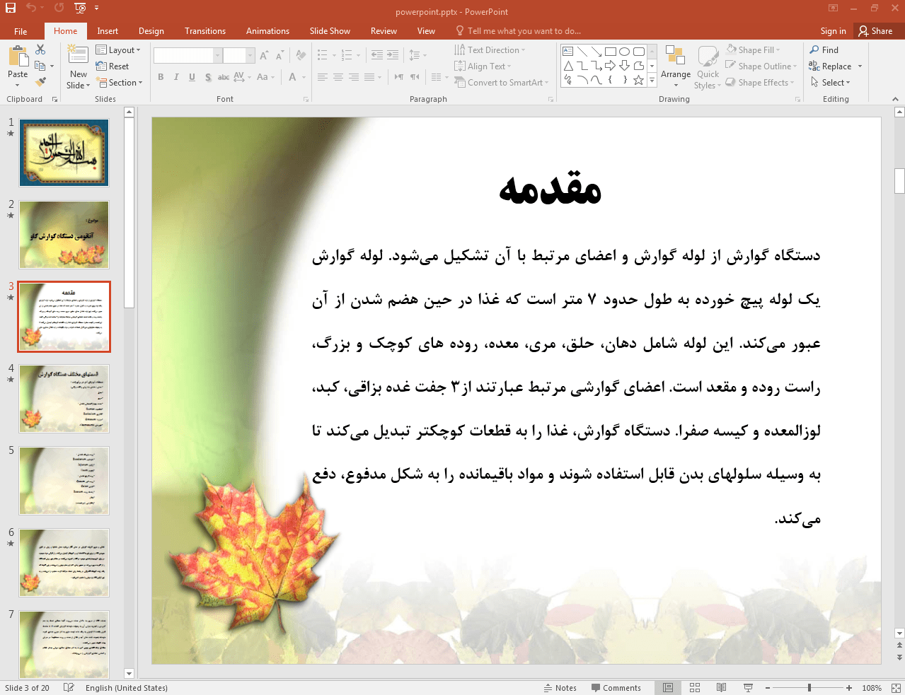 این پاورپوینت در 20 اسلاید تهیه شده و در ادامه نیز تصویر مربوط به اسلاید شماره 3 آن قرار داده شده است: