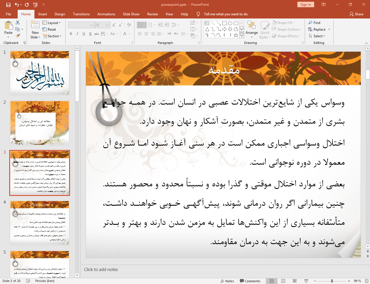 این پاورپوینت در 20 اسلاید تهیه شده و در ادامه نیز تصویر مربوط به اسلاید شماره 3 آن قرار داده شده است: