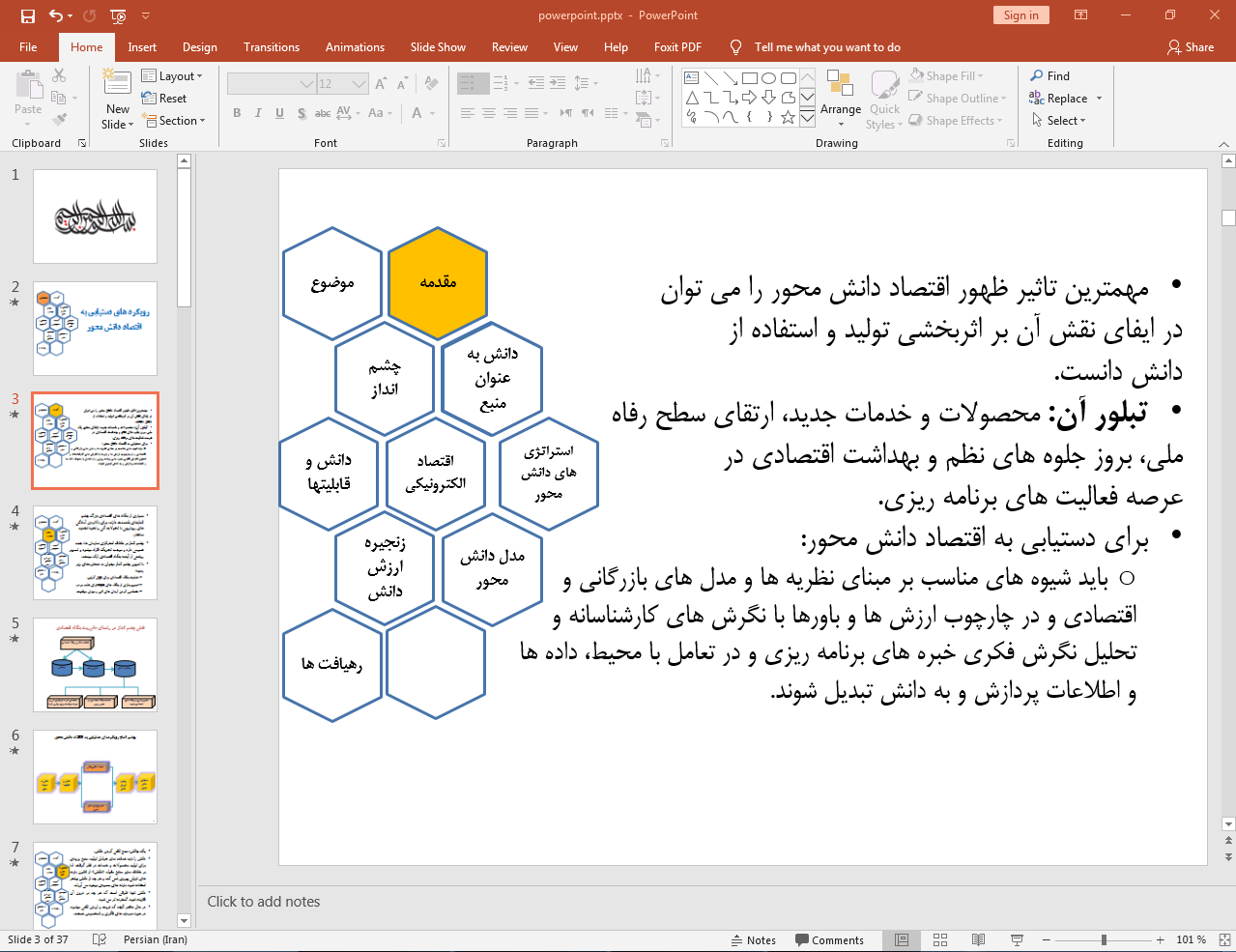 این پاورپوینت در 37 اسلاید تهیه شده و در ادامه نیز تصویر مربوط به اسلاید شماره 3 آن قرار داده شده است: