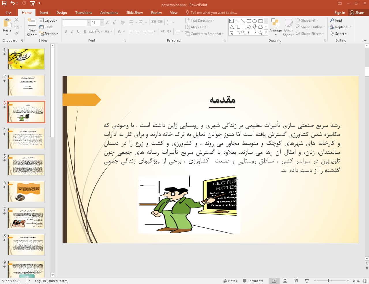 این پاورپوینت در 22 اسلاید تهیه شده و در ادامه نیز تصویر مربوط به اسلاید شماره 3 آن قرار داده شده است:
