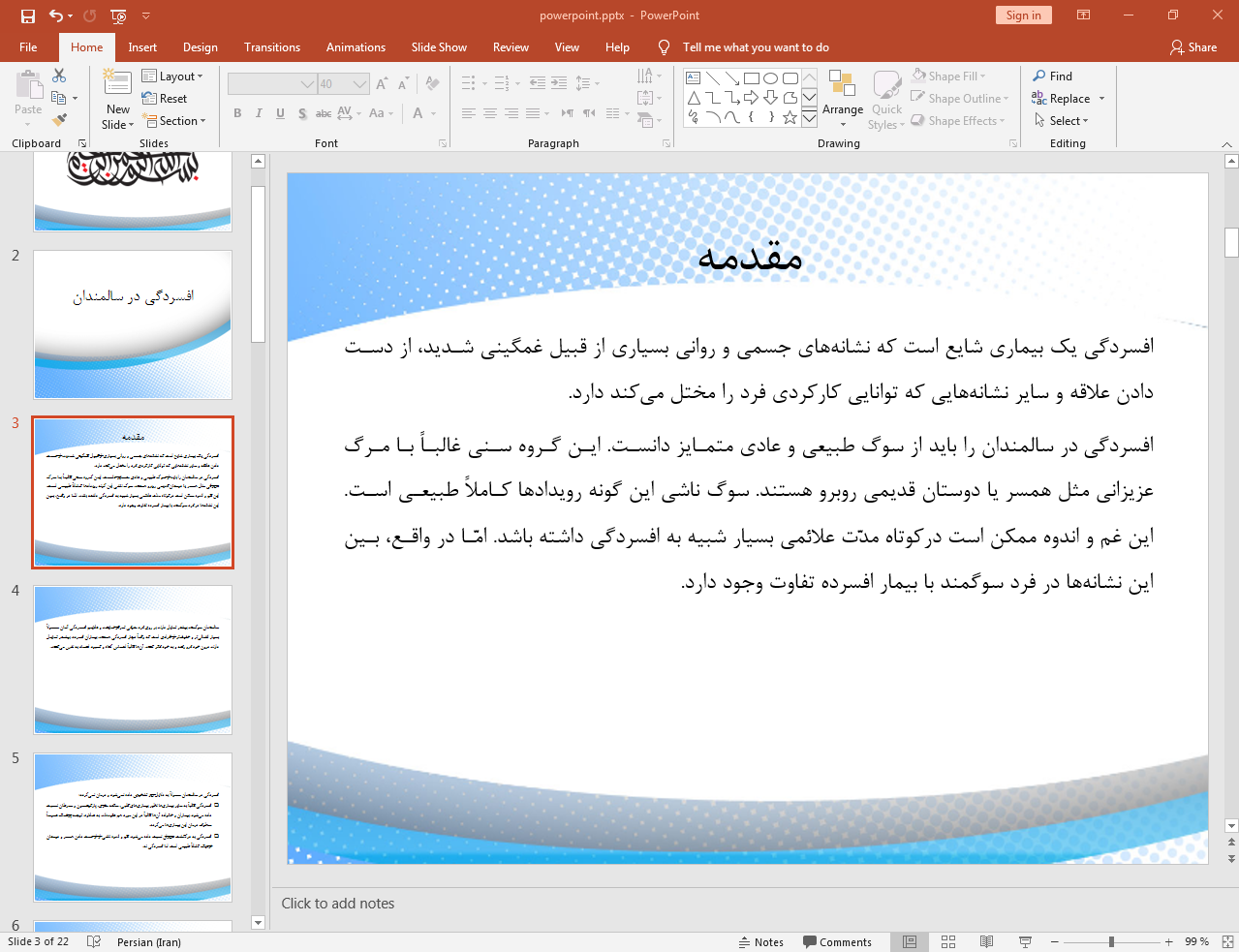 این پاورپوینت در 22 اسلاید تهیه شده و در ادامه نیز تصویر مربوط به اسلاید شماره 3 آن قرار داده شده است: