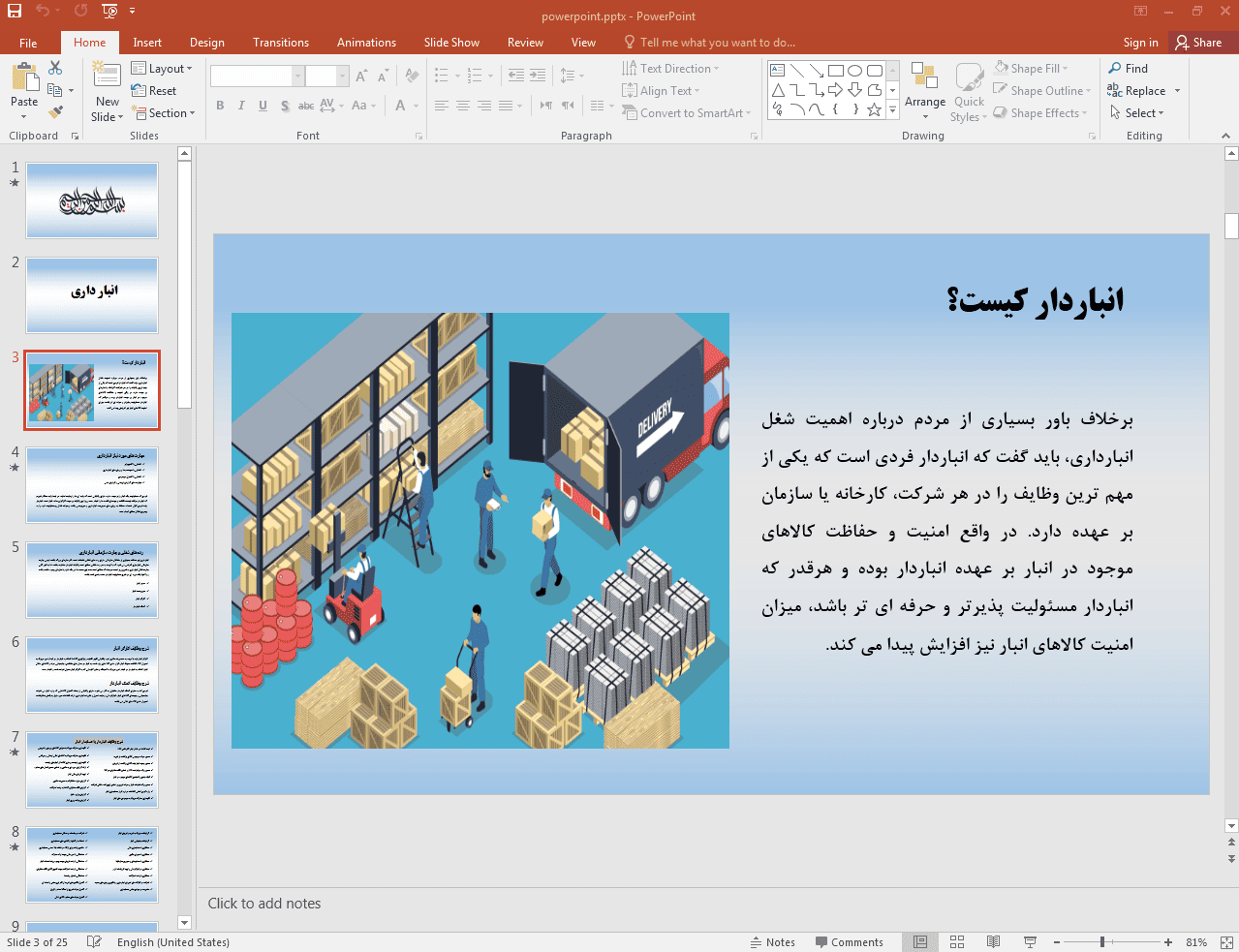 این پاورپوینت در 25 اسلاید تهیه شده و در ادامه نیز تصویر مربوط به اسلاید شماره 3 آن قرار داده شده است: