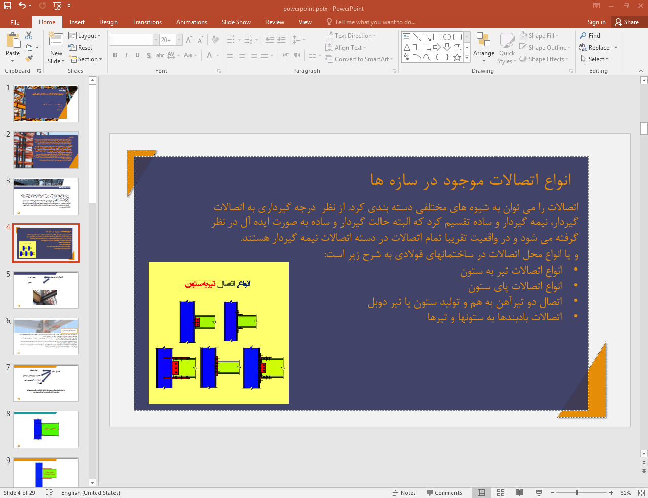 دانلود پاورپوینت آشنایی با انواع اتصالات در ساختمان های فلزی