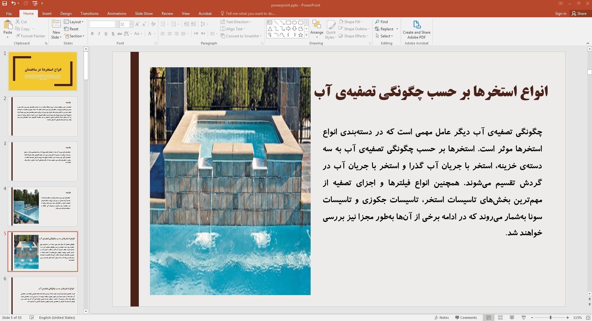 این پاورپوینت در 53 اسلاید تهیه شده و در ادامه نیز تصویر مربوط به اسلاید شماره 5 آن قرار داده شده است: