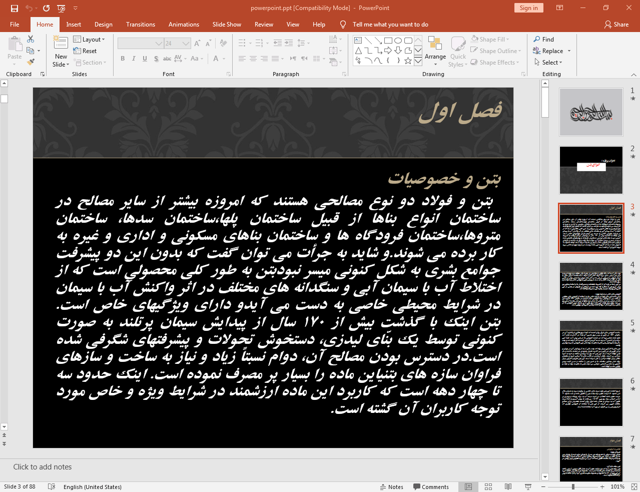 این پاورپوینت در 88 اسلاید تهیه شده و در ادامه نیز تصویر مربوط به اسلاید شماره 3 آن قرار داده شده است: