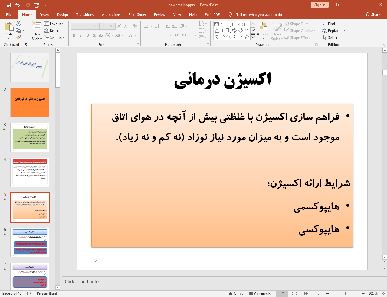 این پاورپوینت در 46 اسلاید تهیه شده و در ادامه نیز تصویر مربوط به اسلاید شماره 5 آن قرار داده شده است: