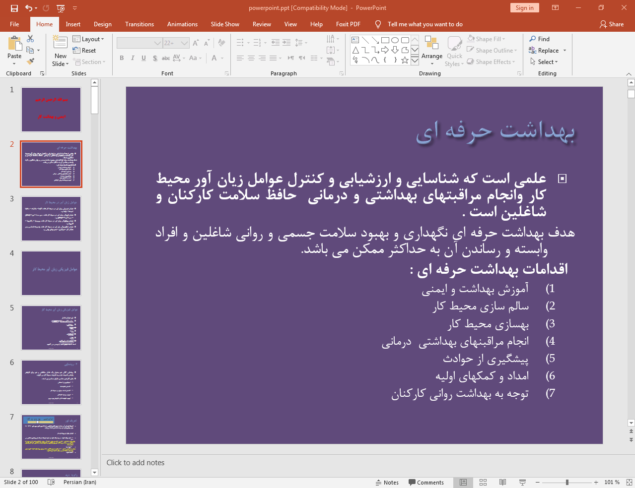 این پاورپوینت در 100 اسلاید تهیه شده و در ادامه نیز تصویر مربوط به اسلاید شماره 2 آن قرار داده شده است: