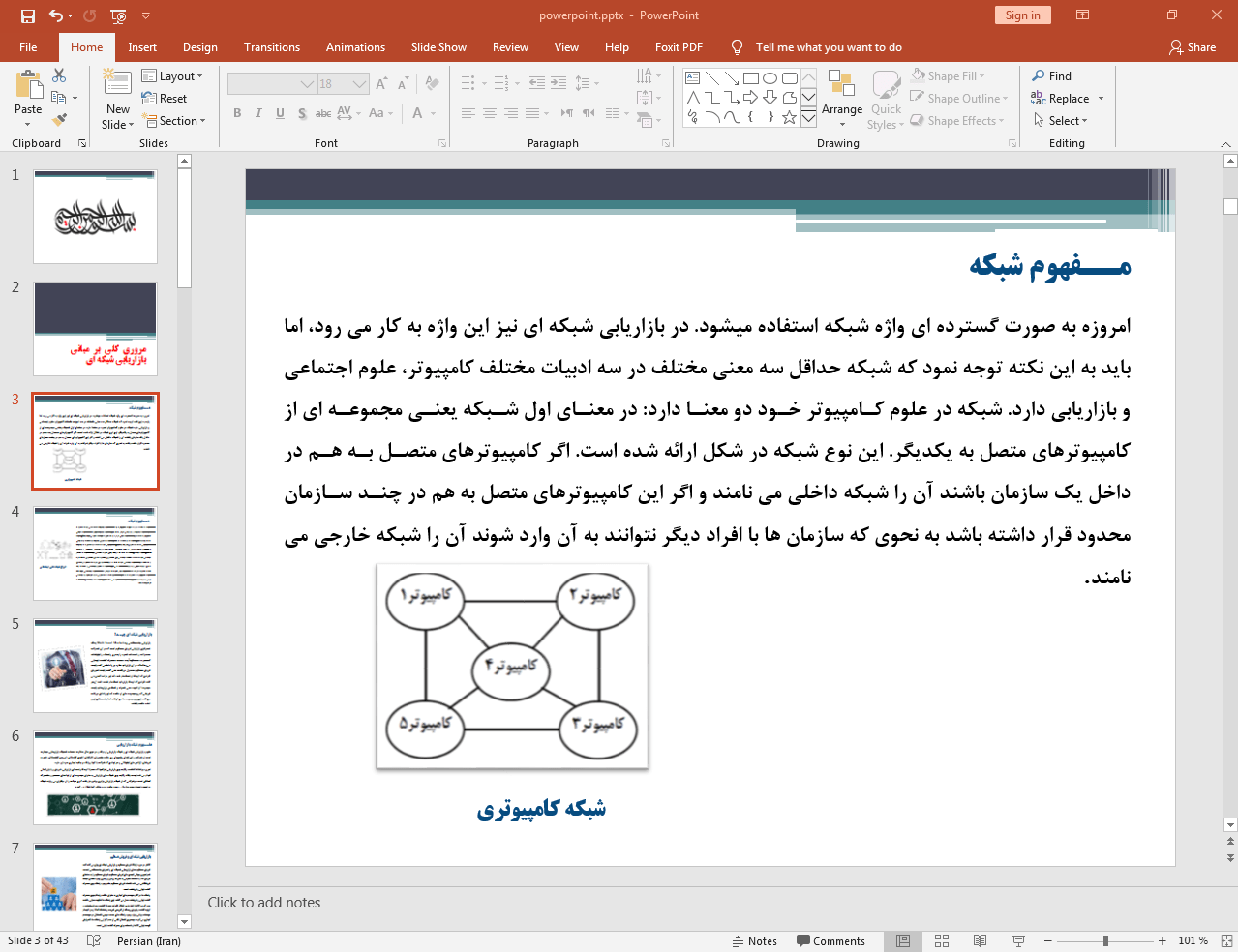 این پاورپوینت در 43 اسلاید تهیه شده و در ادامه نیز تصویر مربوط به اسلاید شماره 3 آن قرار داده شده است: