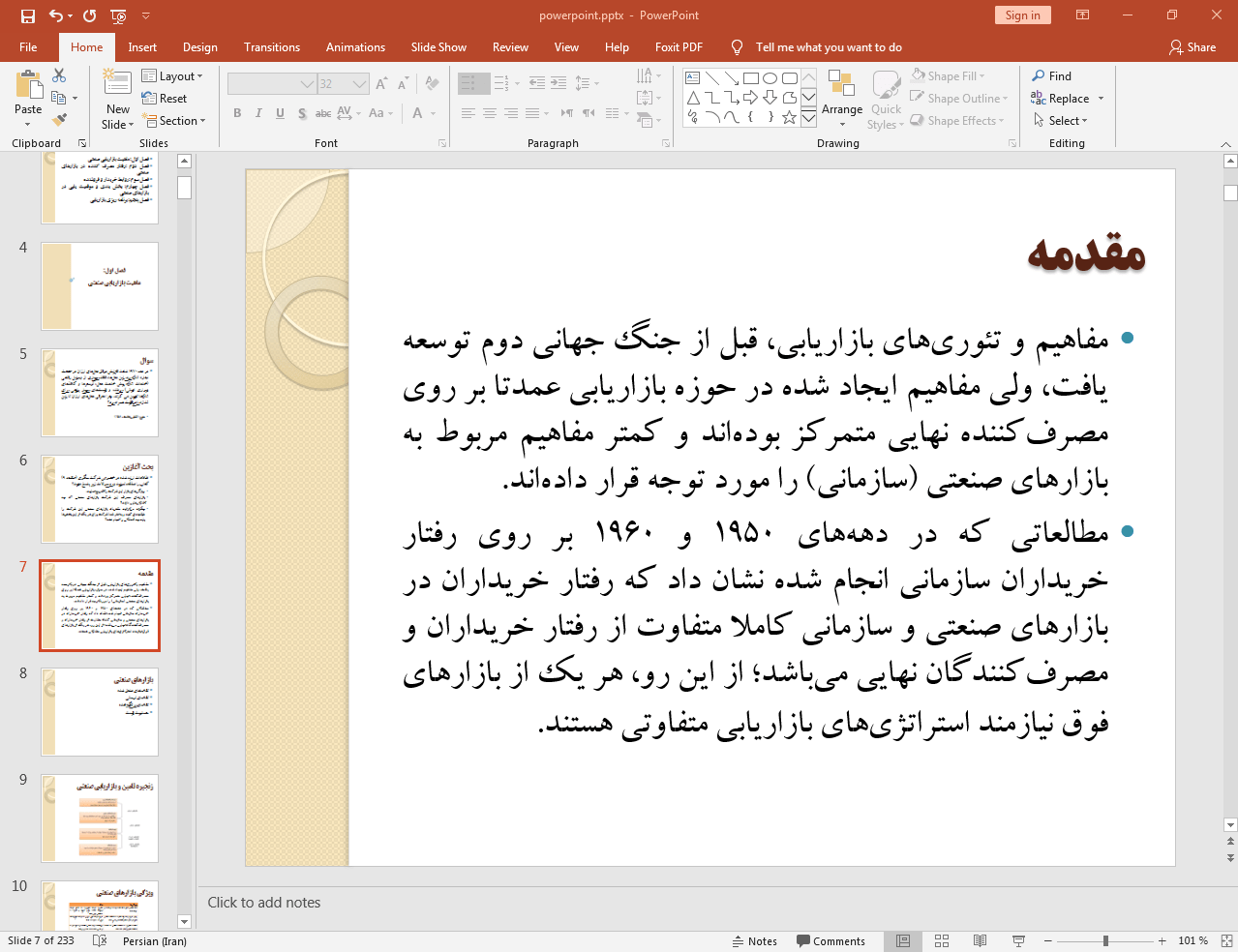 این پاورپوینت در 233 اسلاید تهیه شده و در ادامه نیز تصویر مربوط به اسلاید شماره 7 آن قرار داده شده است: