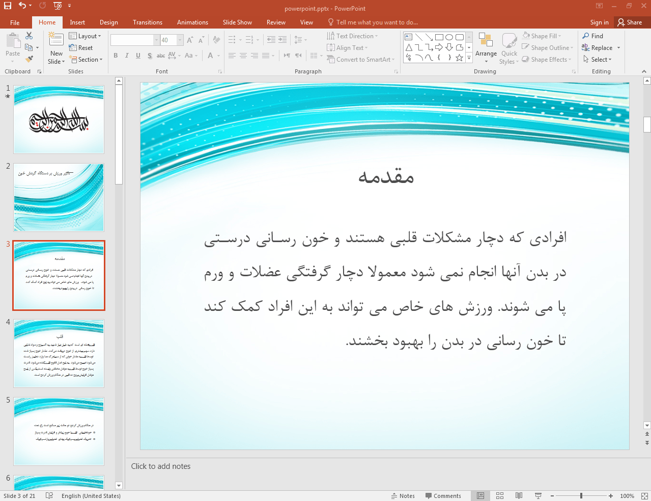 این پاورپوینت در 21 اسلاید تهیه شده و در ادامه نیز تصویر مربوط به اسلاید شماره 3 آن قرار داده شده است: