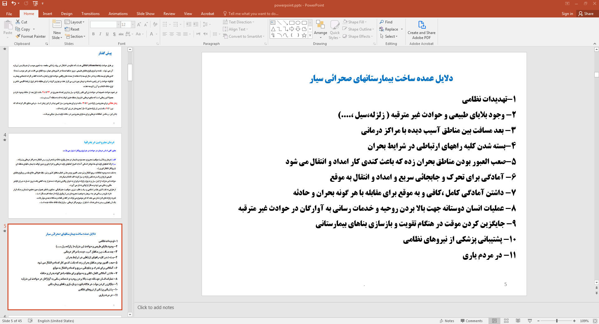 این پاورپوینت در 45 اسلاید تهیه شده و در ادامه نیز تصویر مربوط به اسلاید شماره 5 آن قرار داده شده است:
