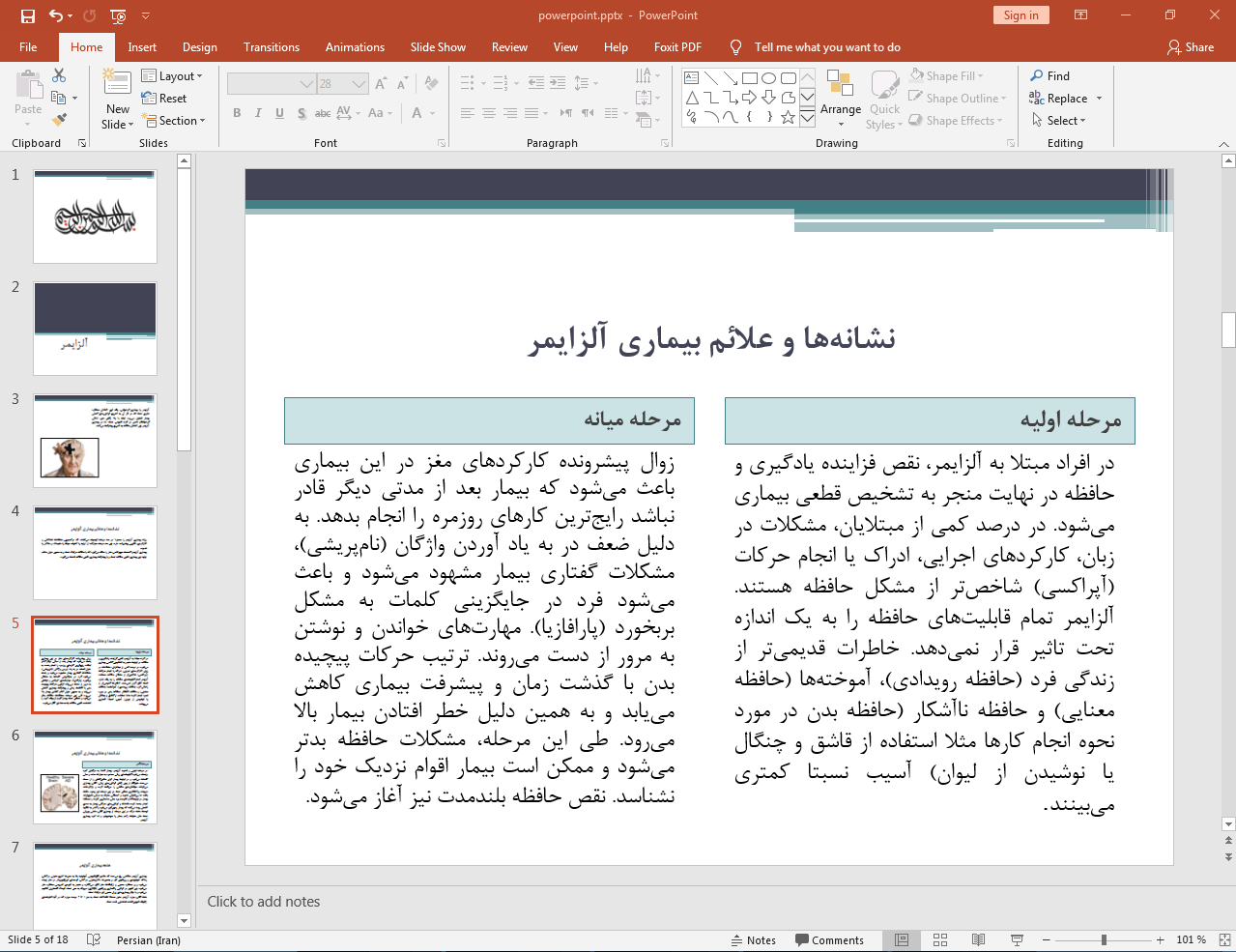 این پاورپوینت در 18 اسلاید تهیه شده و در ادامه نیز تصویر مربوط به اسلاید شماره 5 آن قرار داده شده است: