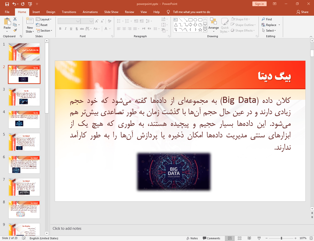 این پاورپوینت در 23 اسلاید تهیه شده و در ادامه نیز تصویر مربوط به اسلاید شماره 2 آن قرار داده شده است: