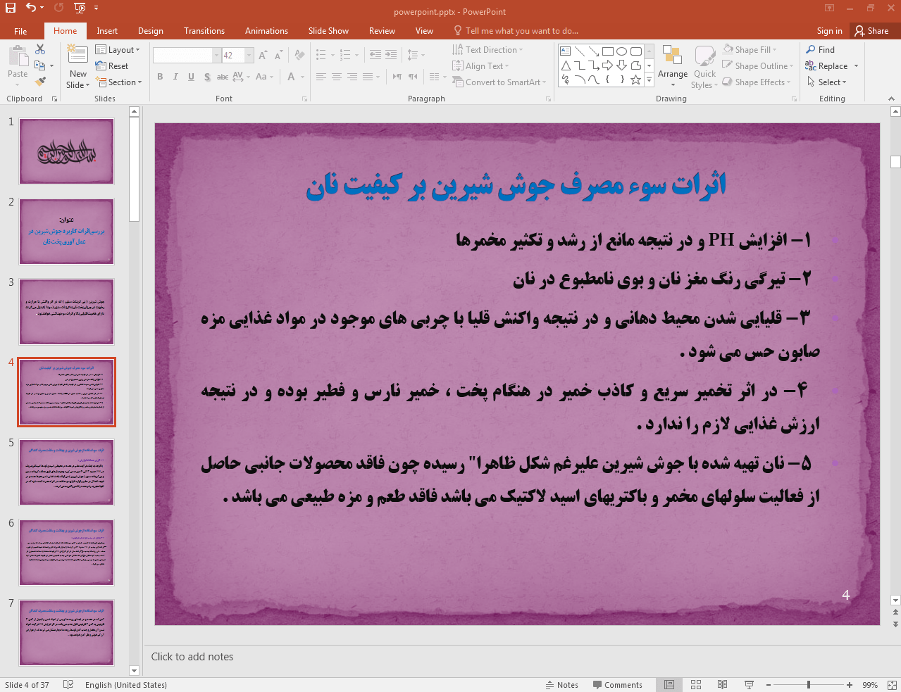 این پاورپوینت در 37 اسلاید تهیه شده و در ادامه نیز تصویر مربوط به اسلاید شماره 4 آن قرار داده شده است: