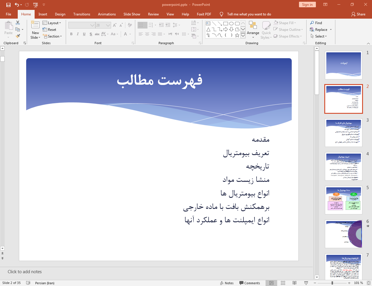 این پاورپوینت در 35 اسلاید تهیه شده و در ادامه نیز تصویر مربوط به اسلاید شماره 2 آن قرار داده شده است: