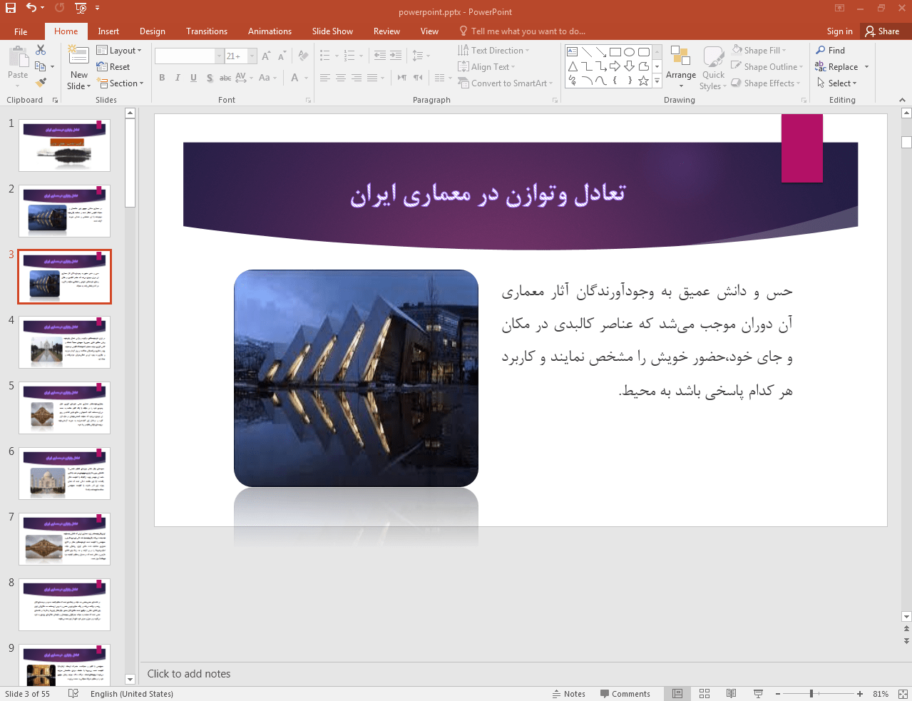 این پاورپوینت در 55 اسلاید تهیه شده و در ادامه نیز تصویر مربوط به اسلاید شماره 3 آن قرار داده شده است: