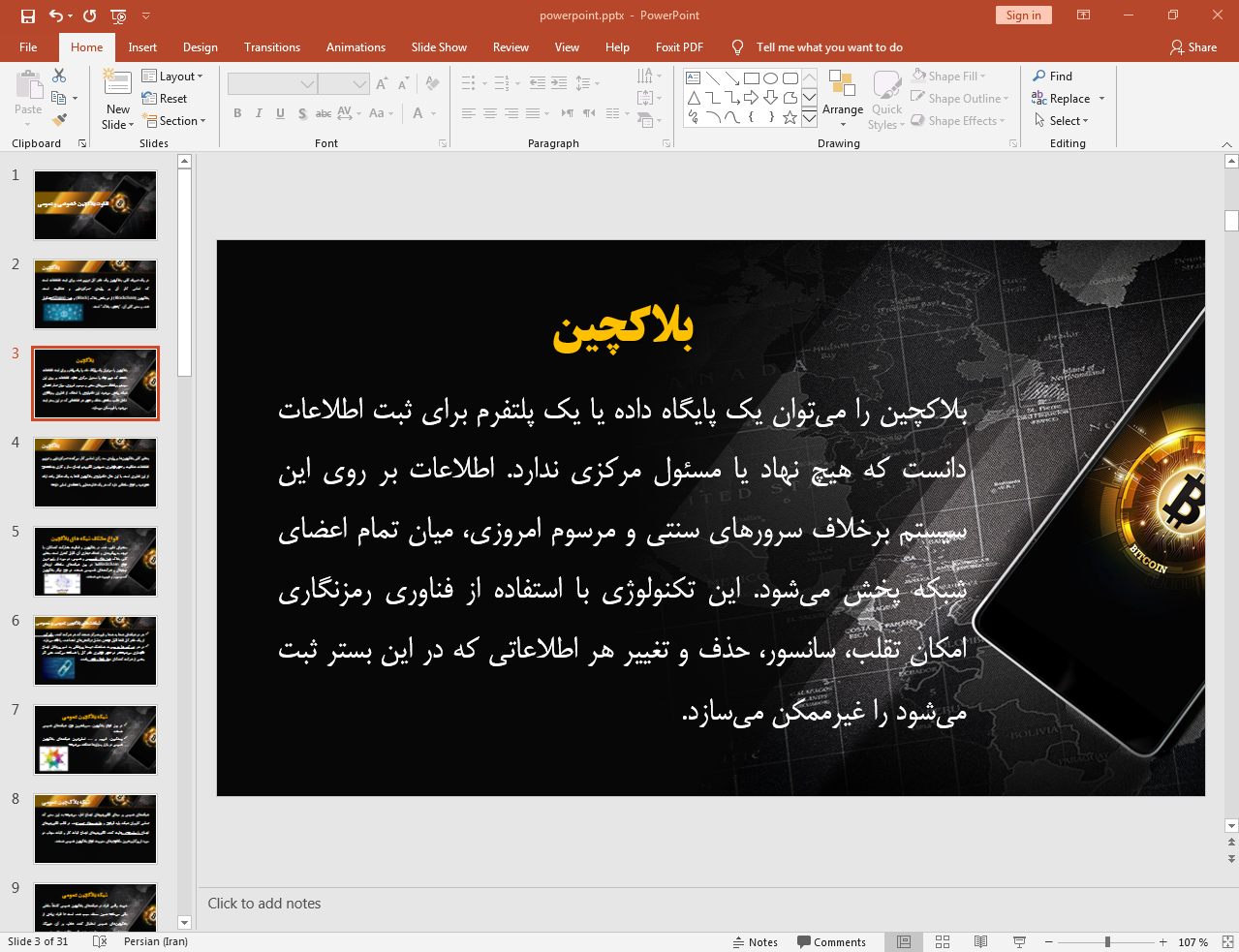 در این پاورپوینت که با قالب (تم) زیبا و حرفه ای طراحی شده است به بررسی تفاوت های بلاک چین عمومی و خصوصی در 31 اسلاید و فایل قابل ویرایش پرداخته ایم. در صورت وجود هر گونه مشکل لطفا با بخش پشتیبانی به شماره 09360147484 تماس بگیرید.