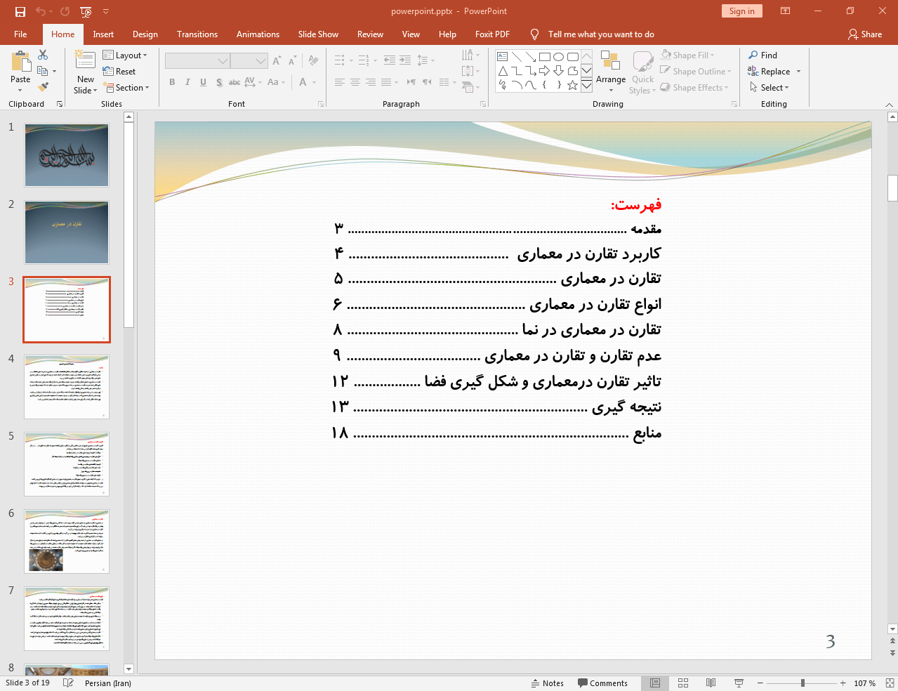این پاورپوینت در 19 اسلاید تهیه شده و در ادامه نیز تصویر مربوط به اسلاید شماره 3 آن قرار داده شده است: