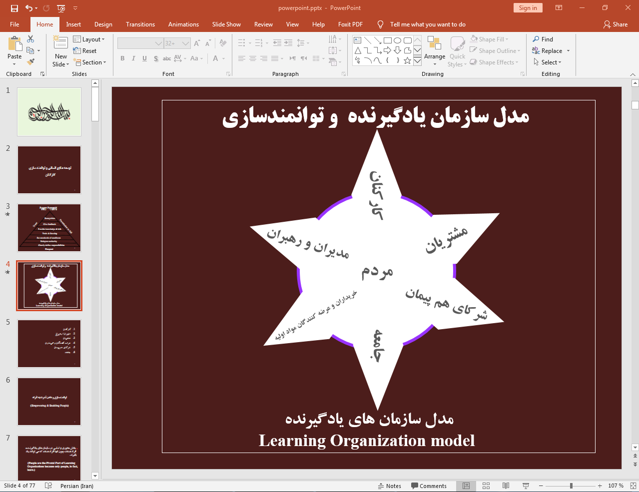 این پاورپوینت در 77 اسلاید تهیه شده و در ادامه نیز تصویر مربوط به اسلاید شماره 4 آن قرار داده شده است: