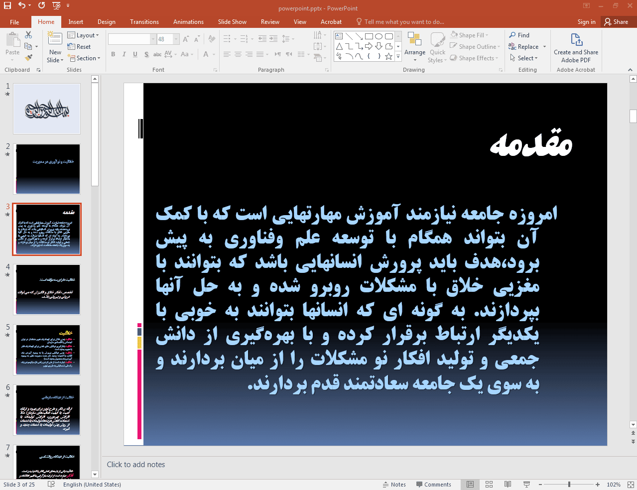 این پاورپوینت در 25 اسلاید تهیه شده و در ادامه نیز تصویر مربوط به اسلاید شماره 3 آن قرار داده شده است: