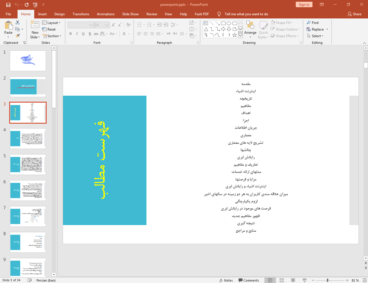 این پاورپوینت در 34 اسلاید تهیه شده و در ادامه نیز تصویر مربوط به اسلاید شماره 3 آن قرار داده شده است: