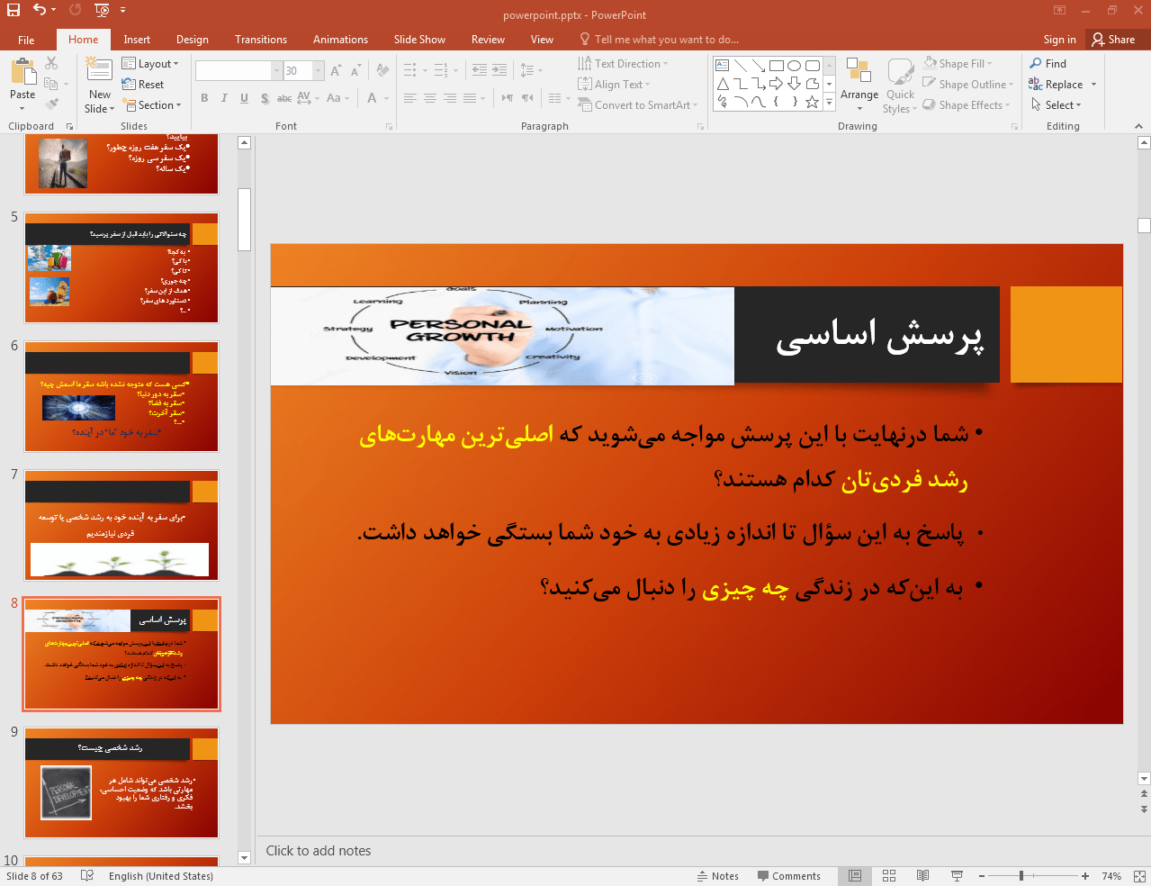 این پاورپوینت در 63 اسلاید تهیه شده و در ادامه نیز تصویر مربوط به اسلاید شماره 8 آن قرار داده شده است: