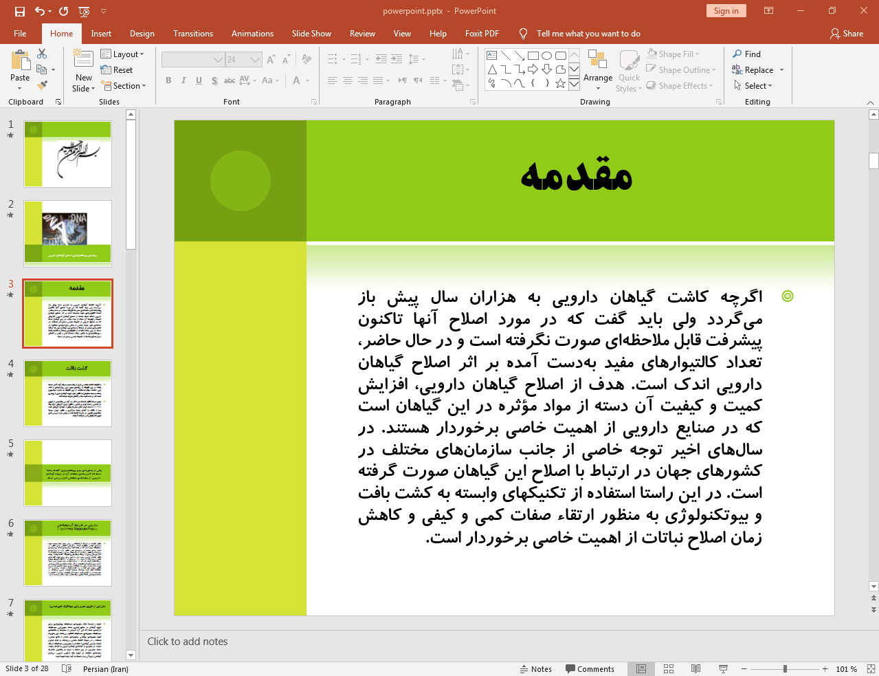 این پاورپوینت در 28 اسلاید تهیه شده و در ادامه نیز تصویر مربوط به اسلاید شماره 3 آن قرار داده شده است:
