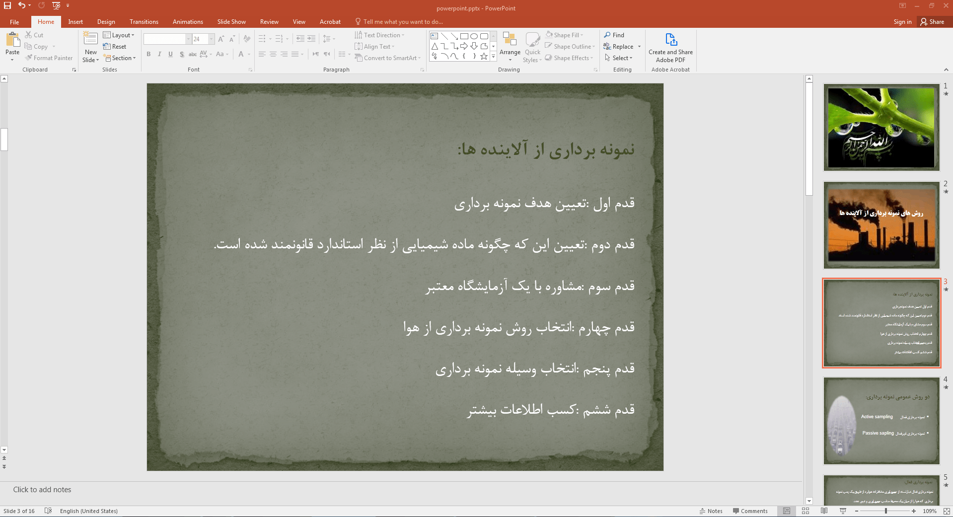 این پاورپوینت در 16 اسلاید تهیه شده و در ادامه نیز تصویر مربوط به اسلاید شماره 3 آن قرار داده شده است: