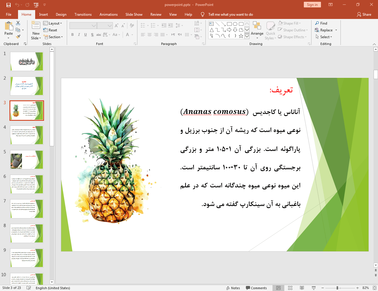 این پاورپوینت در 23 اسلاید تهیه شده و در ادامه نیز تصویر مربوط به اسلاید شماره 3 آن قرار داده شده است: