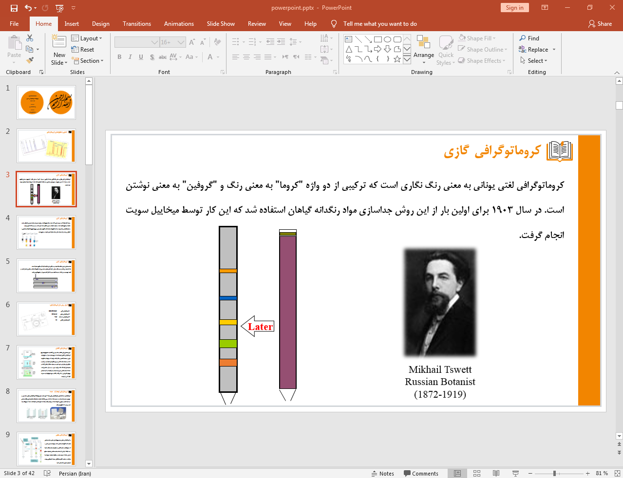این پاورپوینت در 42 اسلاید تهیه شده و در ادامه نیز تصویر مربوط به اسلاید شماره 3 آن قرار داده شده است: