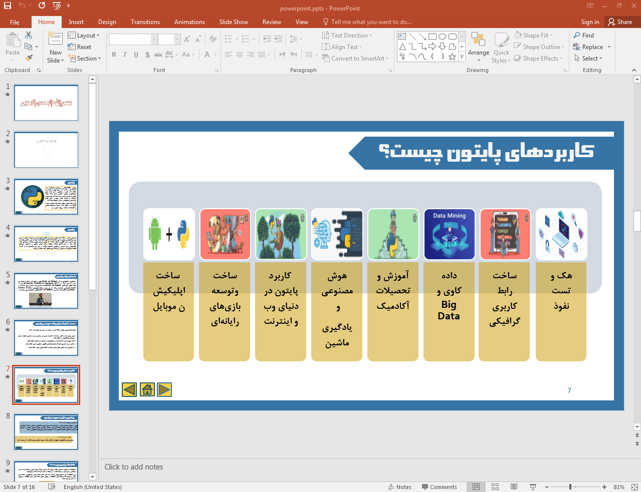 این پاورپوینت در 16 اسلاید تهیه شده و در ادامه نیز تصویر مربوط به اسلاید شماره 7 آن قرار داده شده است: