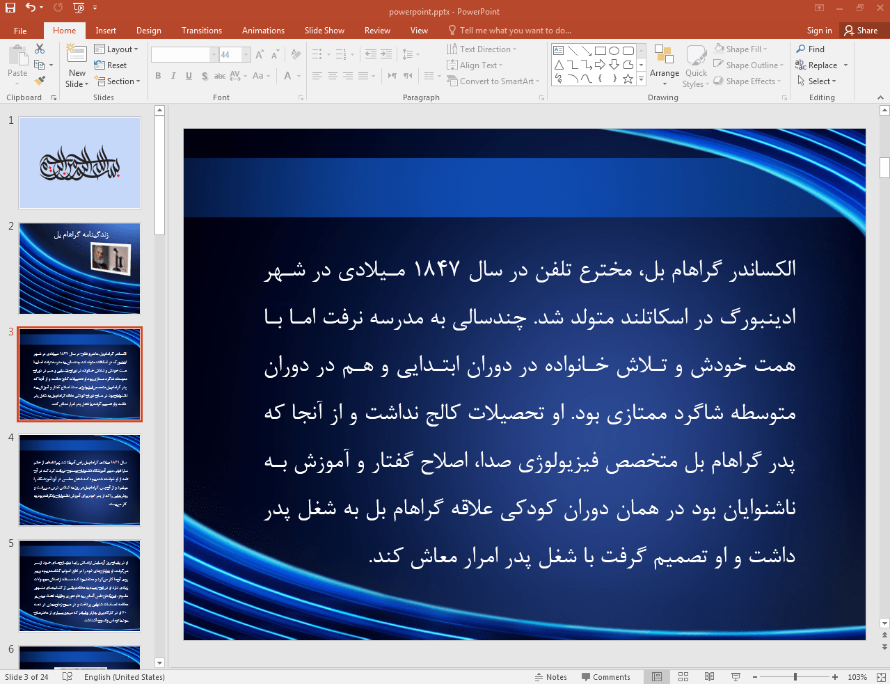این پاورپوینت در 24 اسلاید تهیه شده و در ادامه نیز تصویر مربوط به اسلاید شماره 3 آن قرار داده شده است: