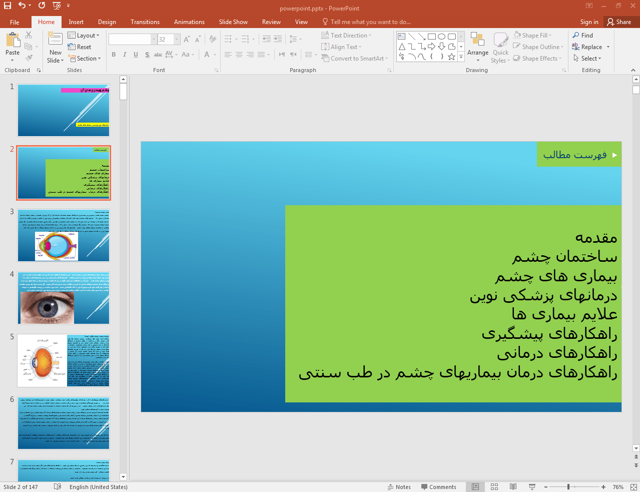 این پاورپوینت در 147 اسلاید تهیه شده و در ادامه نیز تصویر مربوط به اسلاید شماره 2 آن قرار داده شده است:
