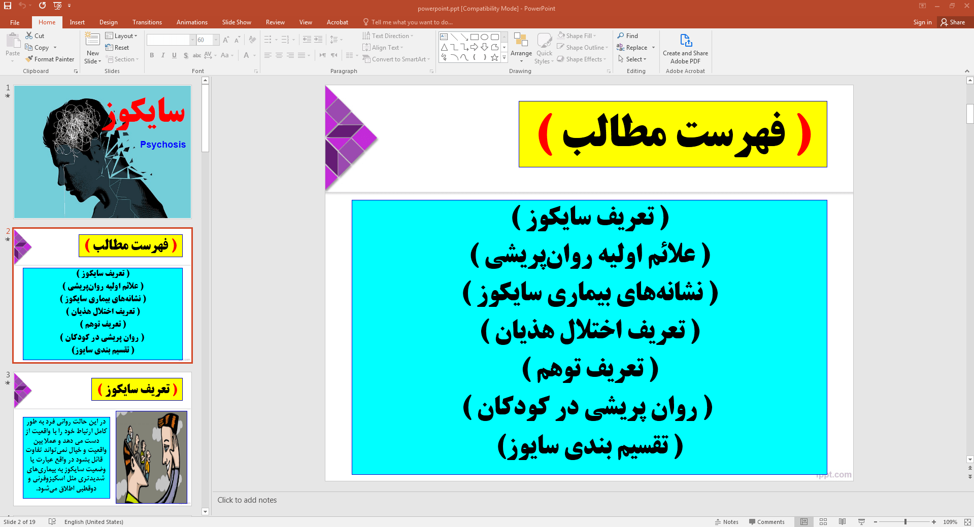 این پاورپوینت در 19 اسلاید تهیه شده و در ادامه نیز تصویر مربوط به اسلاید شماره 2 آن قرار داده شده است: