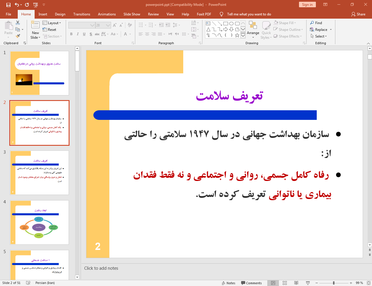 این پاورپوینت در 51 اسلاید تهیه شده و در ادامه نیز تصویر مربوط به اسلاید شماره 2 آن قرار داده شده است: